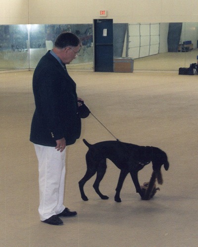 Ch. RvrWray Mavrk Hunters Piece 'O Mind in Best of Breed competition for owner/breeder Darlene Raiford.