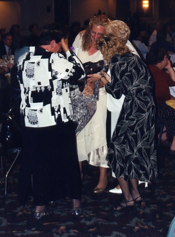 Patty tearfully accepts the Velvet Elvis Award from last year's recipient, Peggy Roush. A very emotional tribute and well deserved indeed, this award has come to mean so much to everyone as it is given in memory of Ann Keegan who was not only a humble winner in this sport but also a gracious loser as well.