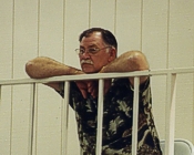 Steve intent and watchful from the balcony; emotions in check...but not for long.